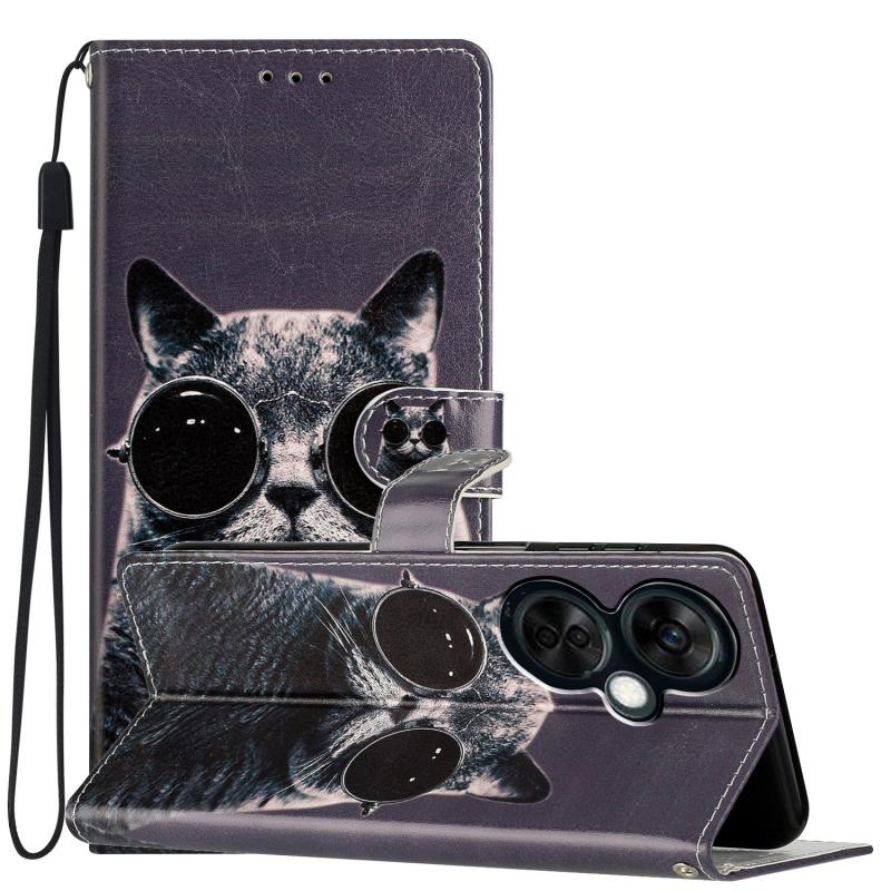 For OnePlus Nord CE 3 Lite 5G Colored Drawing Leather Phone Case(Sunglasses Cat)