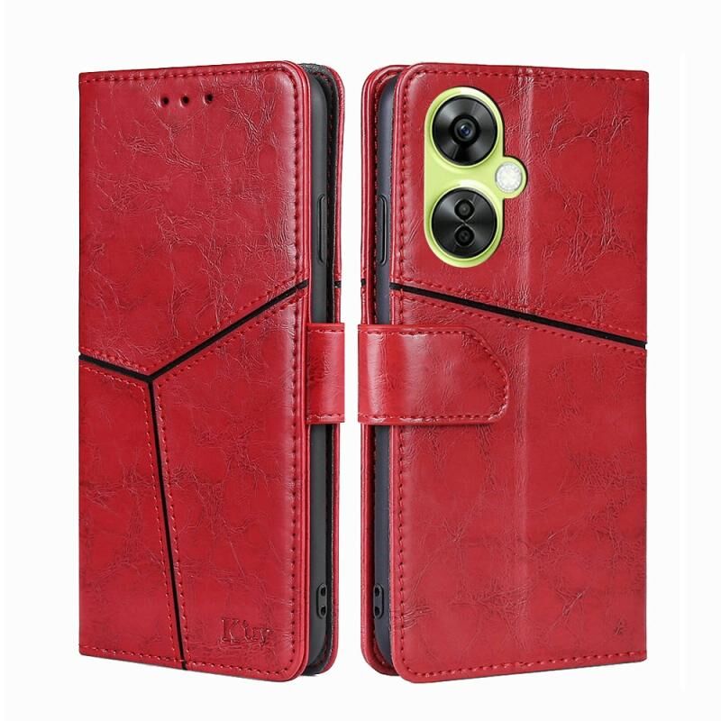 Για OnePlus Nord CE 3 Lite 5G γεωμετρική ραφή δερμάτινη θήκη τηλεφώνου (κόκκινο)