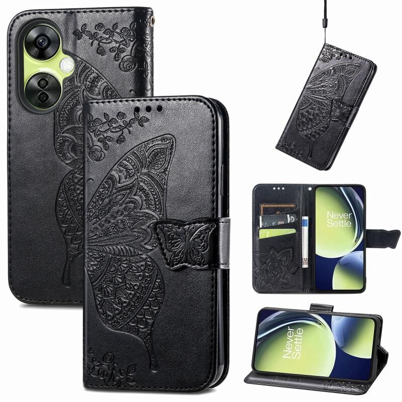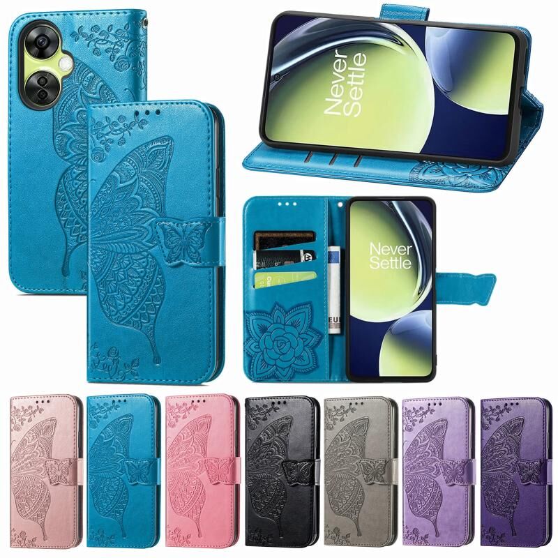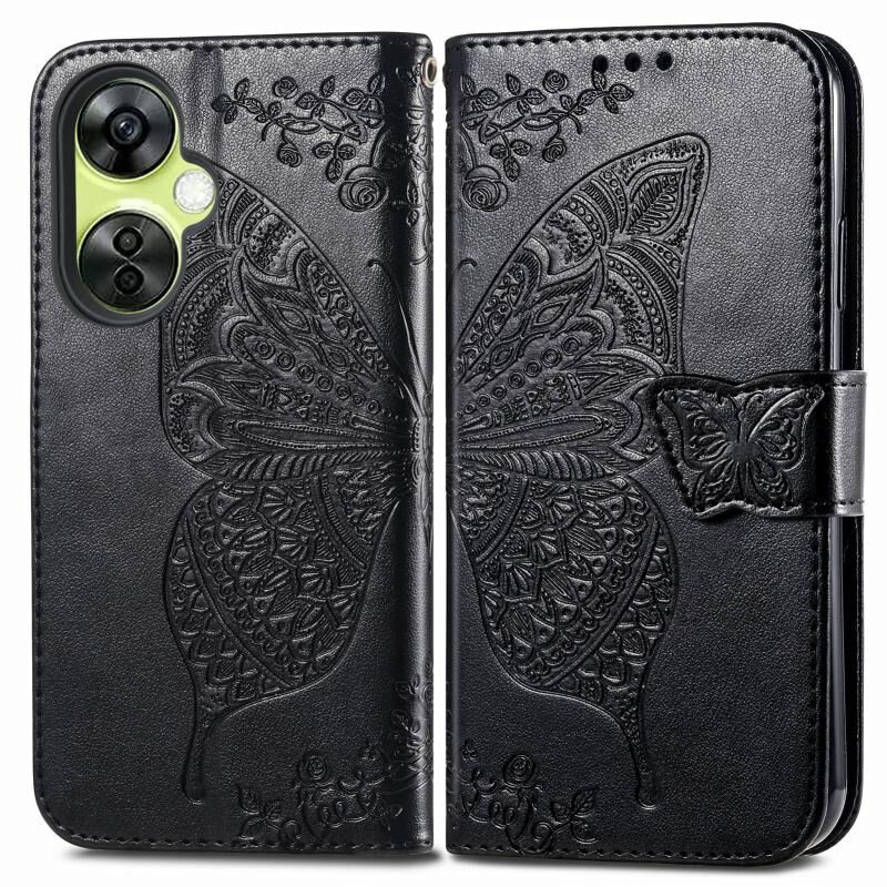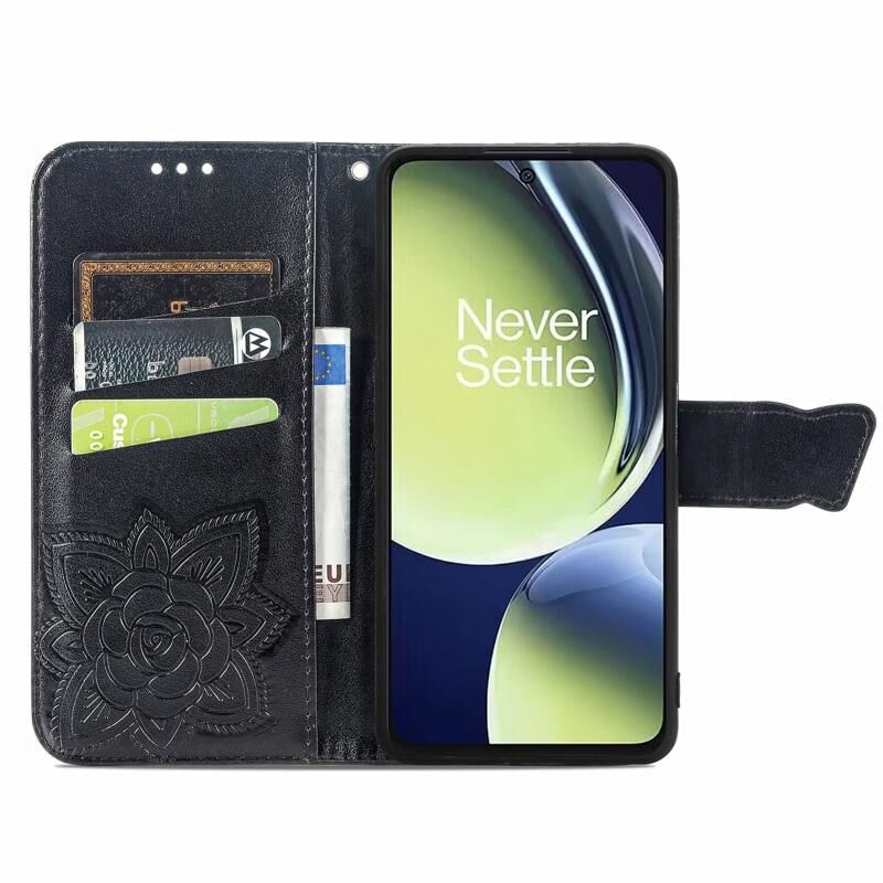 Θήκη τηλεφώνου από δέρμα με ανάγλυφο σχέδιο πεταλούδας και λουλουδιών για OnePlus Nord CE 3 Lite (Χρυσό Ροζ)