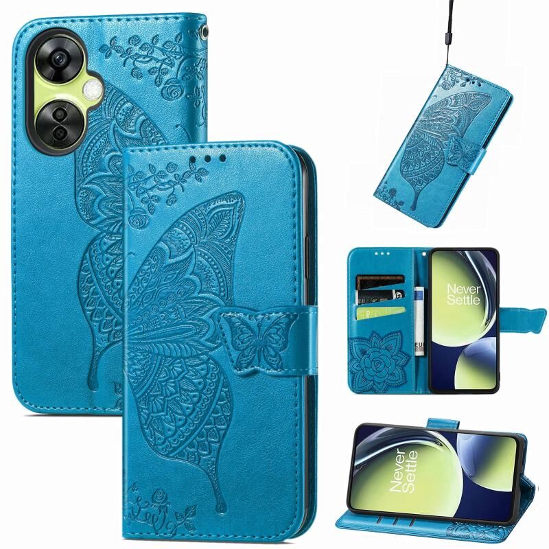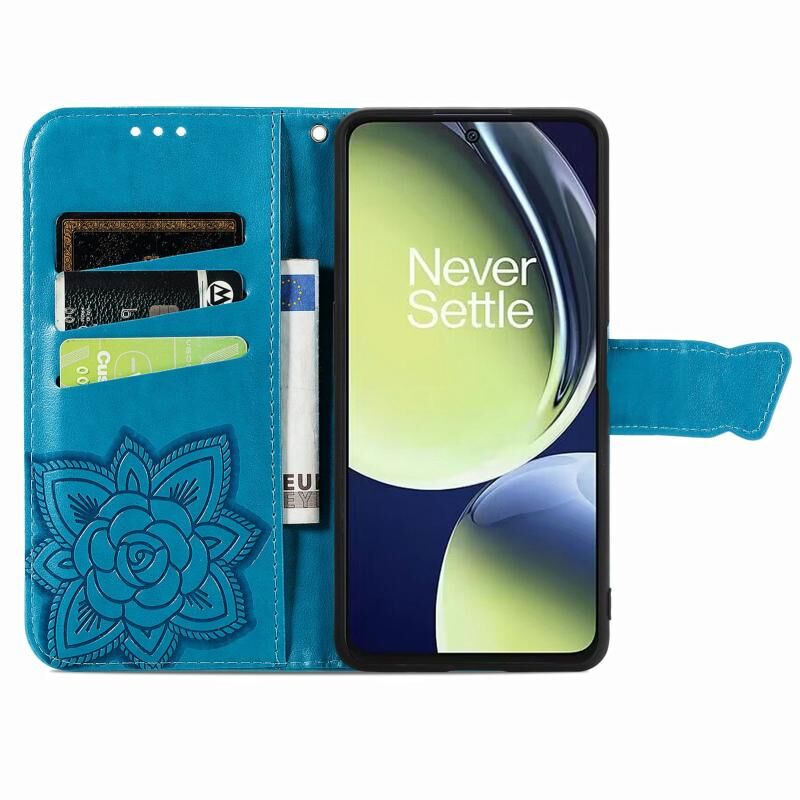 Θήκη τηλεφώνου από δέρμα με ανάγλυφο σχέδιο πεταλούδας και λουλουδιών για OnePlus Nord CE 3 Lite (Χρυσό Ροζ)
