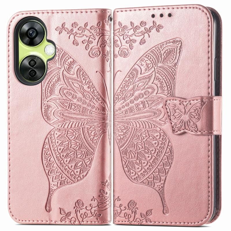 Θήκη τηλεφώνου από δέρμα με ανάγλυφο σχέδιο πεταλούδας και λουλουδιών για OnePlus Nord CE 3 Lite (Χρυσό Ροζ)