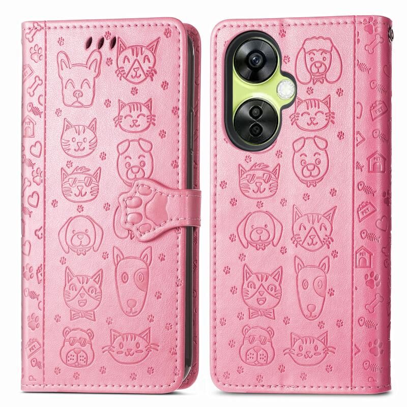 Θήκη τηλεφώνου από δέρμα με ανάγλυφο σχέδιο γάτας και σκύλου για OnePlus Nord CE 3 Lite (Μωβ)