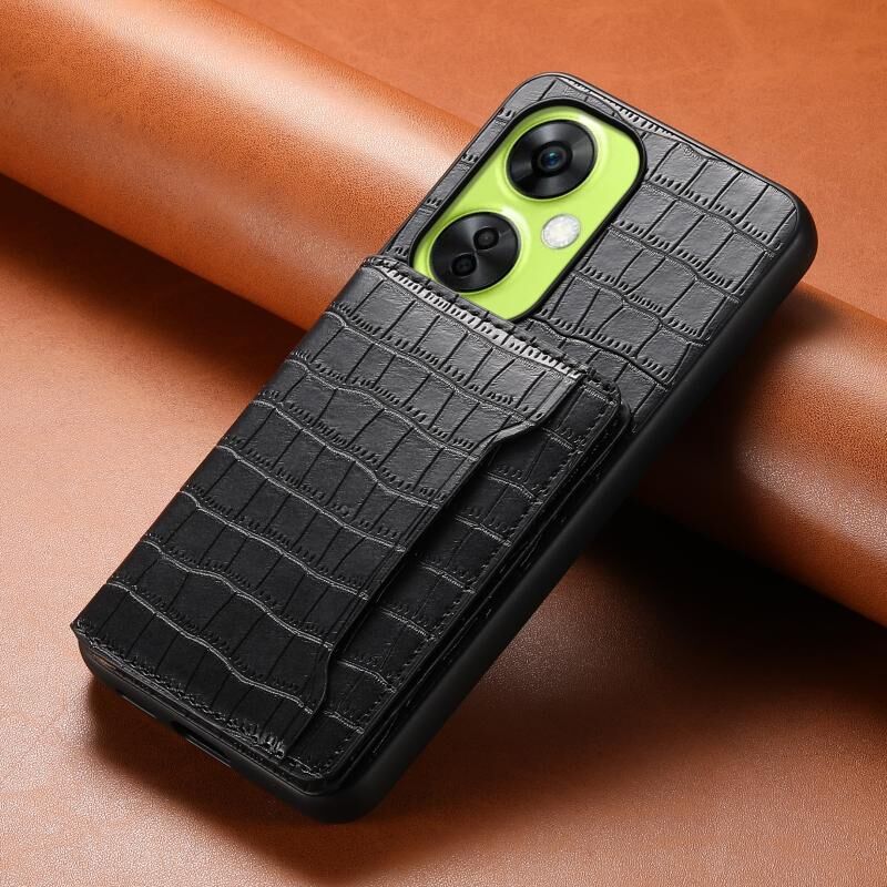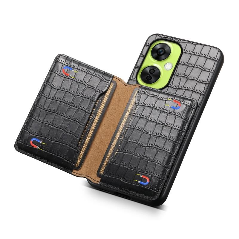 Θήκη τηλεφώνου πλήρους κάλυψης για OnePlus Nord CE 3 Lite, σχέδιο τσάντας κάρτας με υφή κροκόδειλου (Καφέ)