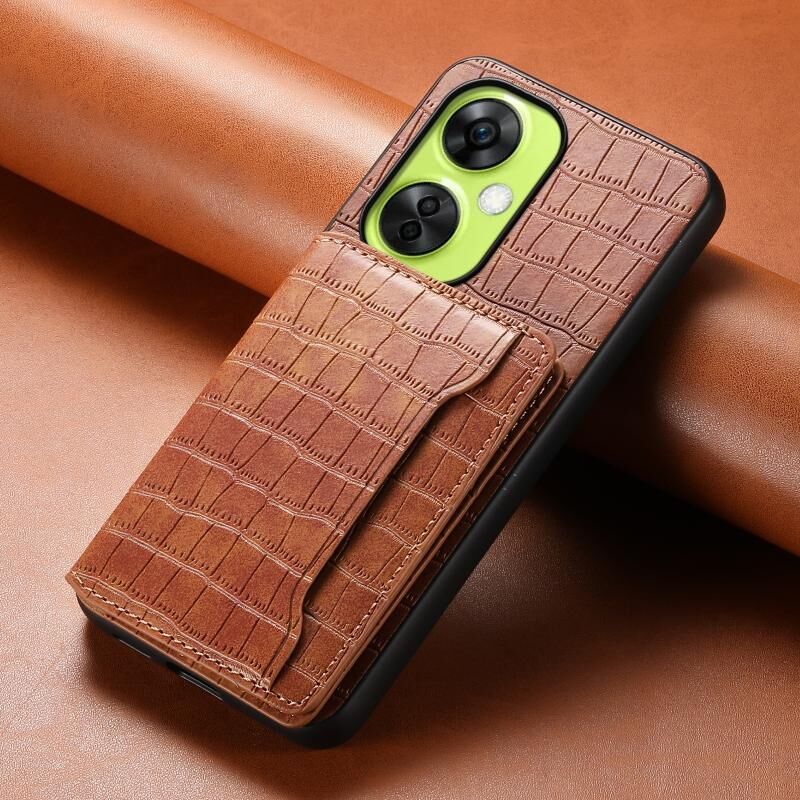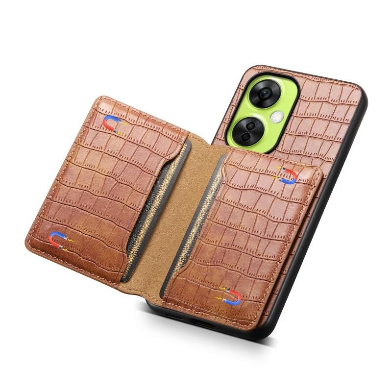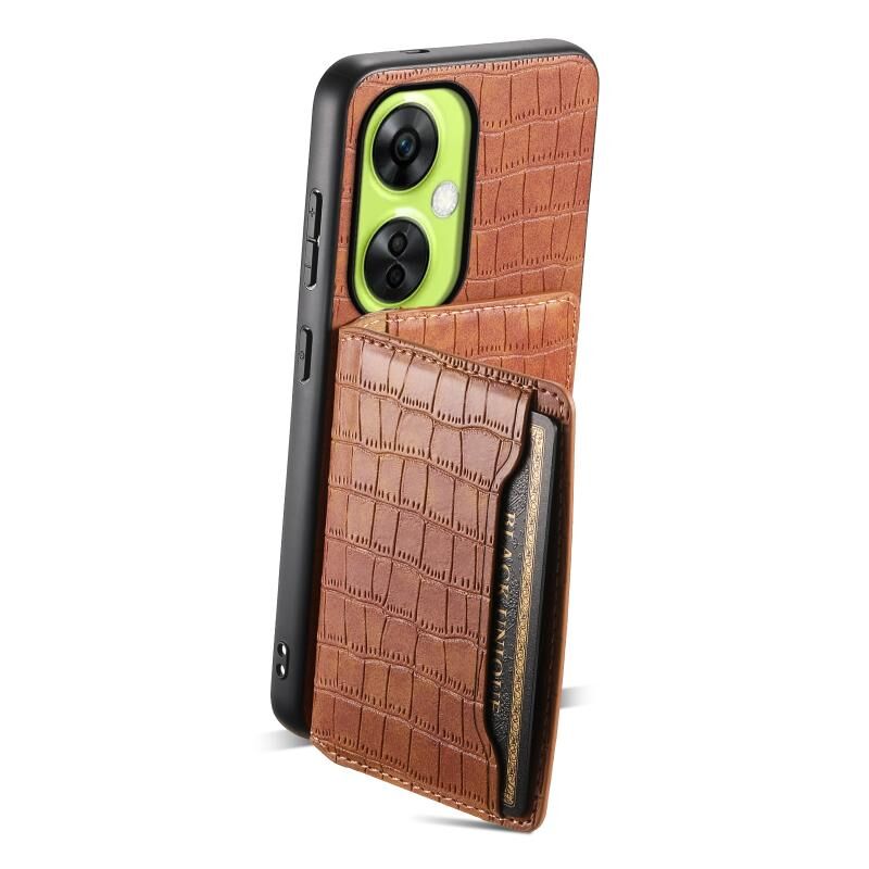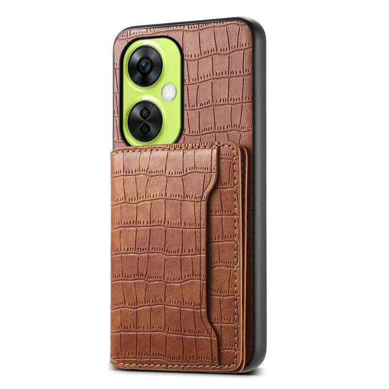 Θήκη τηλεφώνου πλήρους κάλυψης για OnePlus Nord CE 3 Lite, σχέδιο τσάντας κάρτας με υφή κροκόδειλου (Καφέ)