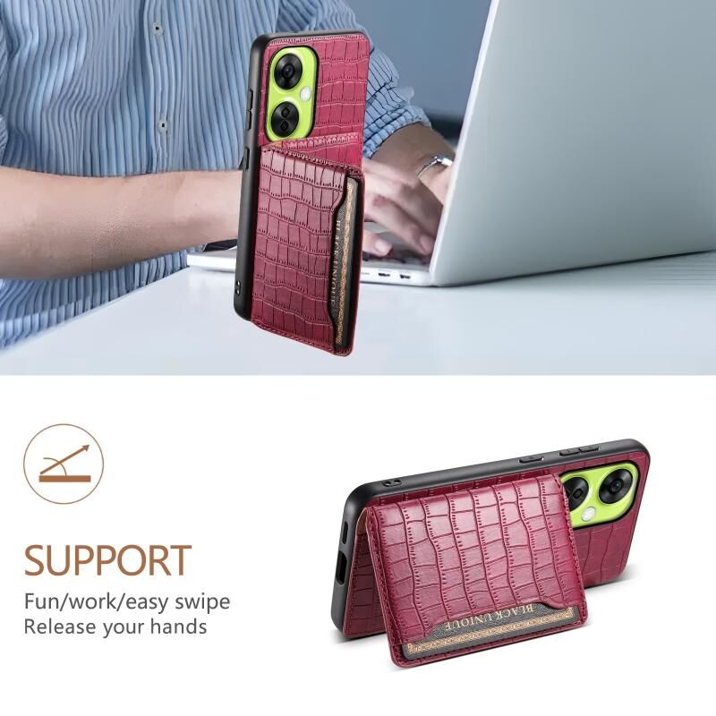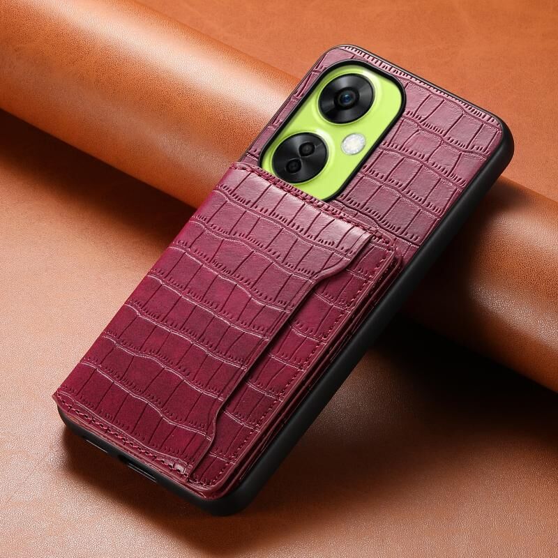 Θήκη τηλεφώνου πλήρους κάλυψης για OnePlus Nord CE 3 Lite, σχέδιο τσάντας κάρτας με υφή κροκόδειλου (Καφέ)