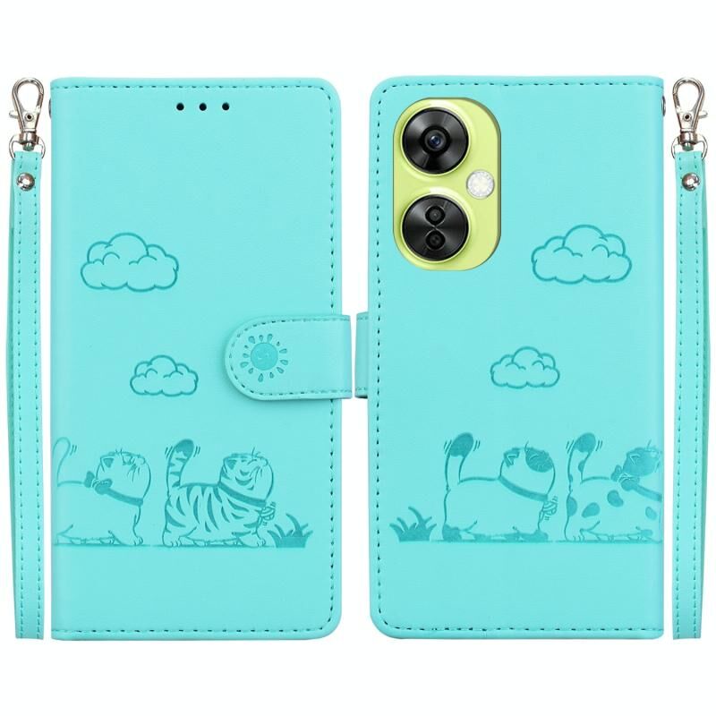 Θήκη τηλεφώνου από δέρμα με χαριτωμένες γάτες RFID για OnePlus Nord CE 3 Lite (Χρυσό Ρόδι)