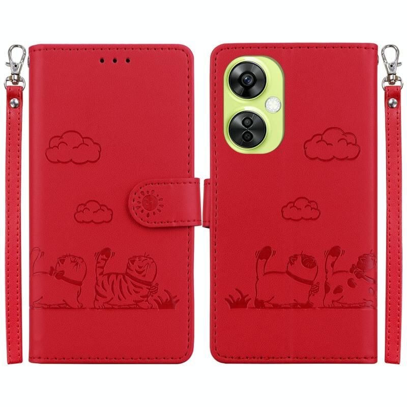 Θήκη τηλεφώνου από δέρμα με χαριτωμένες γάτες RFID για OnePlus Nord CE 3 Lite (Χρυσό Ρόδι)