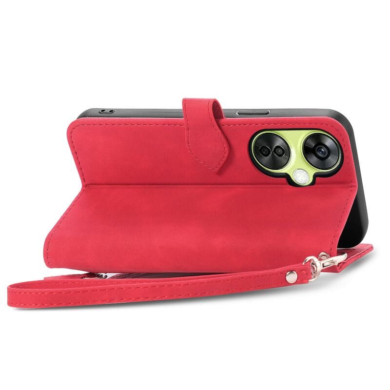 Για OnePlus Nord CE 3 Lite ανάγλυφο λουλούδι φερμουάρ δερμάτινη θήκη τηλεφώνου (κόκκινο)