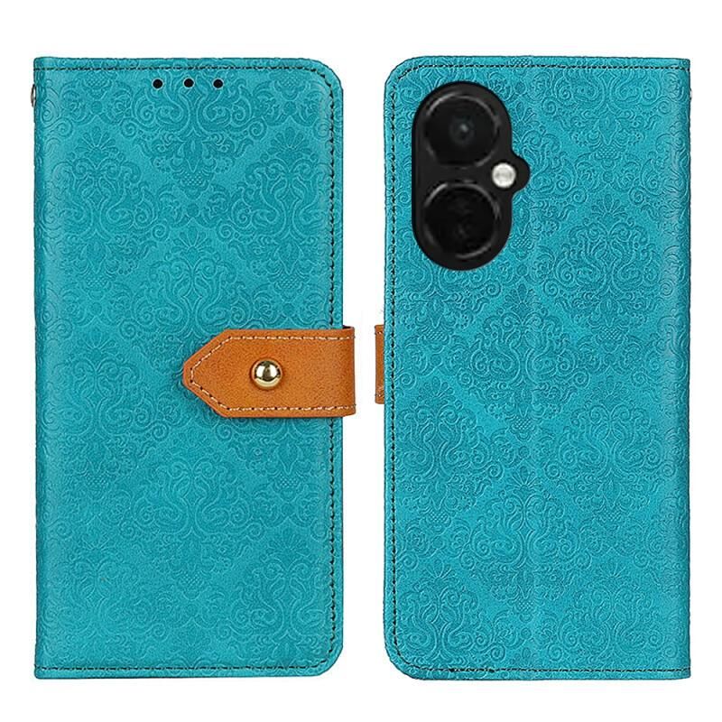 Για OnePlus Nord CE 3 Lite Ευρωπαϊκή Floral ανάγλυφο ανάγλυφο Flip δέρμα υπόθεση τηλεφώνου (μπλε)