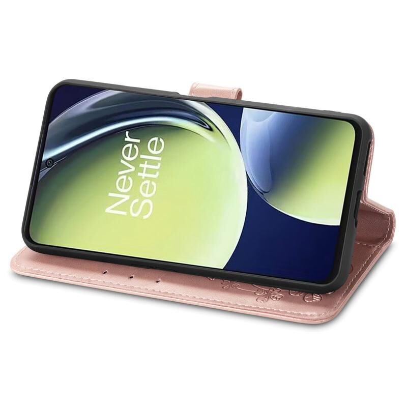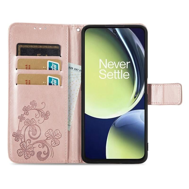 For OnePlus Nord CE 3 Lite Four-leaf Clasp Embossed Buckle Leather Phone Case(Rose Gold)