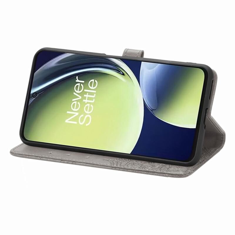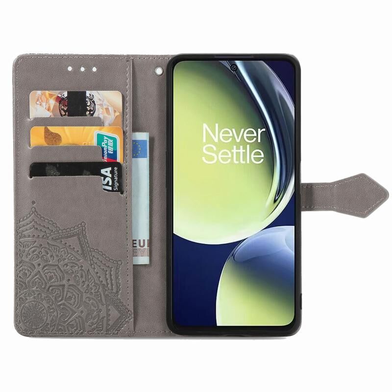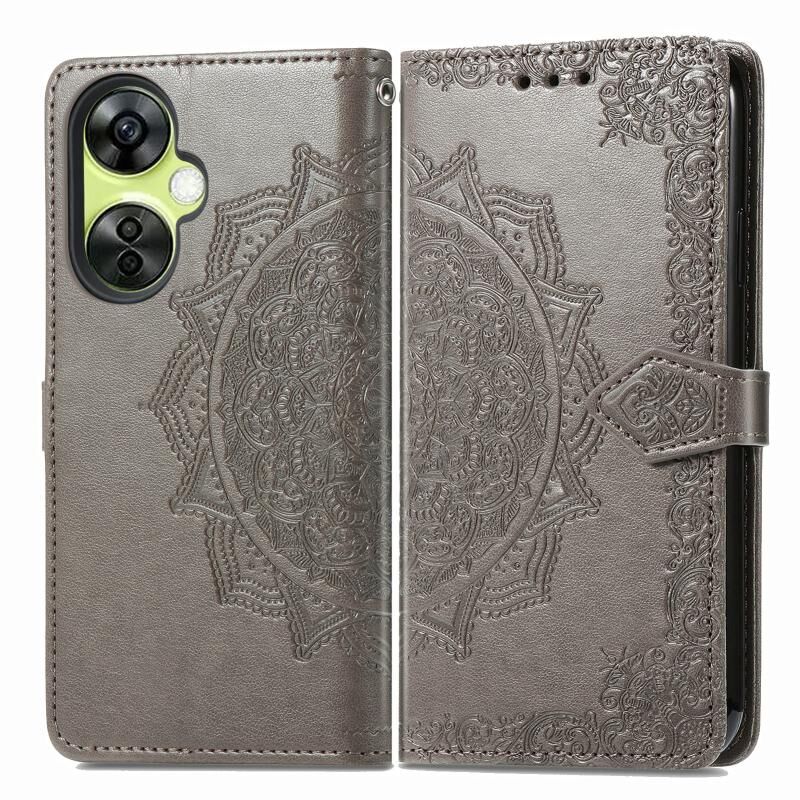 Για OnePlus Nord CE 3 Lite Mandala λουλούδι ανάγλυφο δερμάτινη θήκη τηλεφώνου (γκρι)