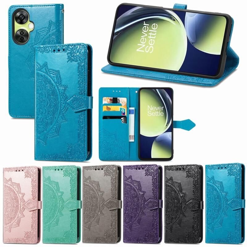 Για OnePlus Nord CE 3 Lite Mandala λουλούδι ανάγλυφο δερμάτινη θήκη τηλεφώνου (πράσινο)