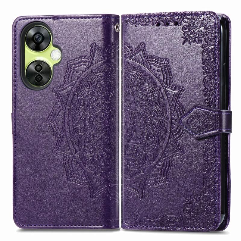Για OnePlus Nord CE 3 Lite Mandala λουλούδι ανάγλυφο δερμάτινη θήκη τηλεφώνου (μωβ)