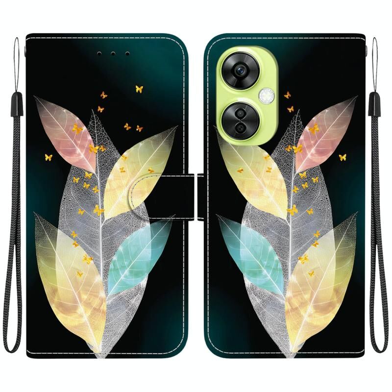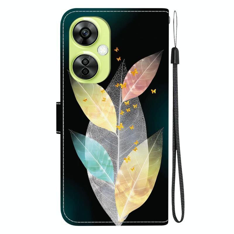 Θήκη τηλεφώνου από δέρμα με πολύχρωμο σχέδιο κρυστάλλινης υφής για OnePlus Nord CE 3 Lite / N30 (Χρυσά Φτερά Πεταλούδας)