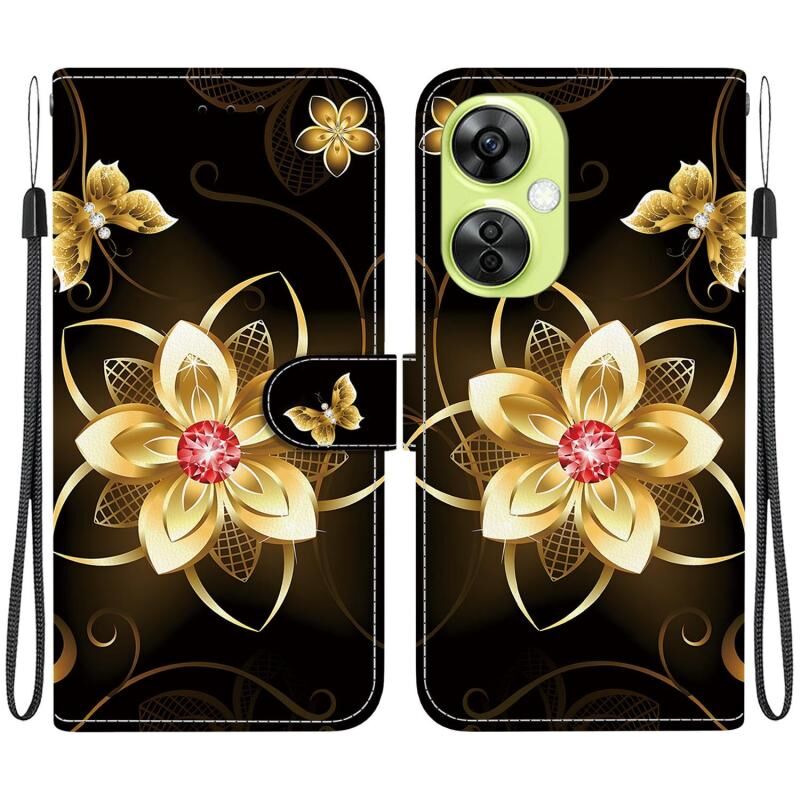 Θήκη τηλεφώνου από δέρμα με πολύχρωμο σχέδιο κρυστάλλινης υφής για OnePlus Nord CE 3 Lite / N30 (Χρυσά Φτερά Πεταλούδας)