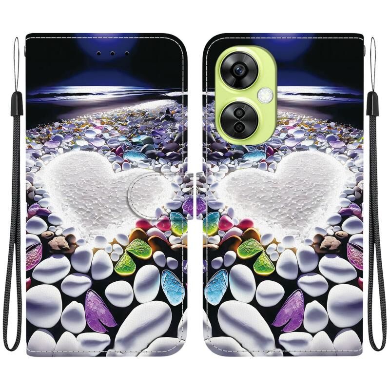 Θήκη τηλεφώνου από δέρμα με πολύχρωμο σχέδιο κρυστάλλινης υφής για OnePlus Nord CE 3 Lite / N30 (Σχήμα καρδιάς)