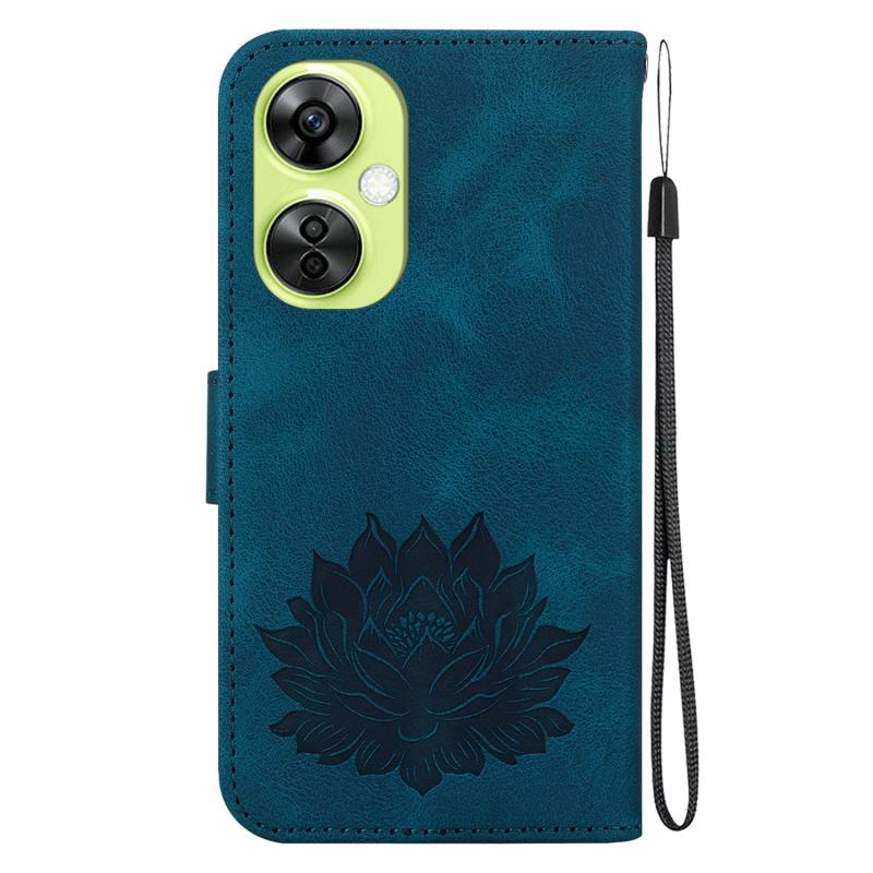 For OnePlus Nord CE 3 Lite / Nord N30 Lotus Embossed Leather Phone Case(Dark Blue)