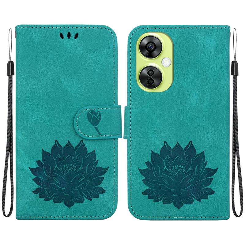 For OnePlus Nord CE 3 Lite / Nord N30 Lotus Embossed Leather Phone Case(Green)