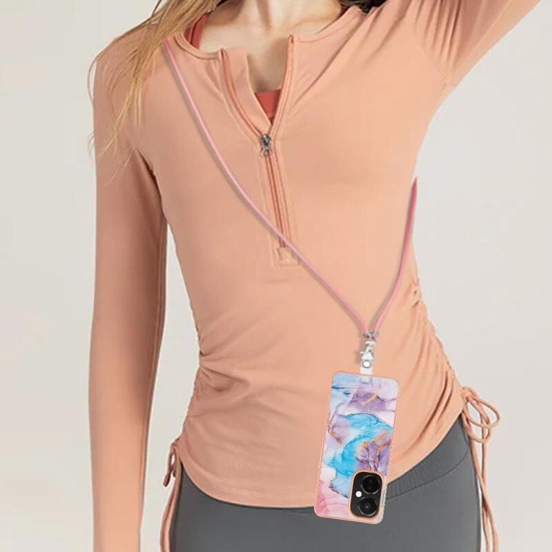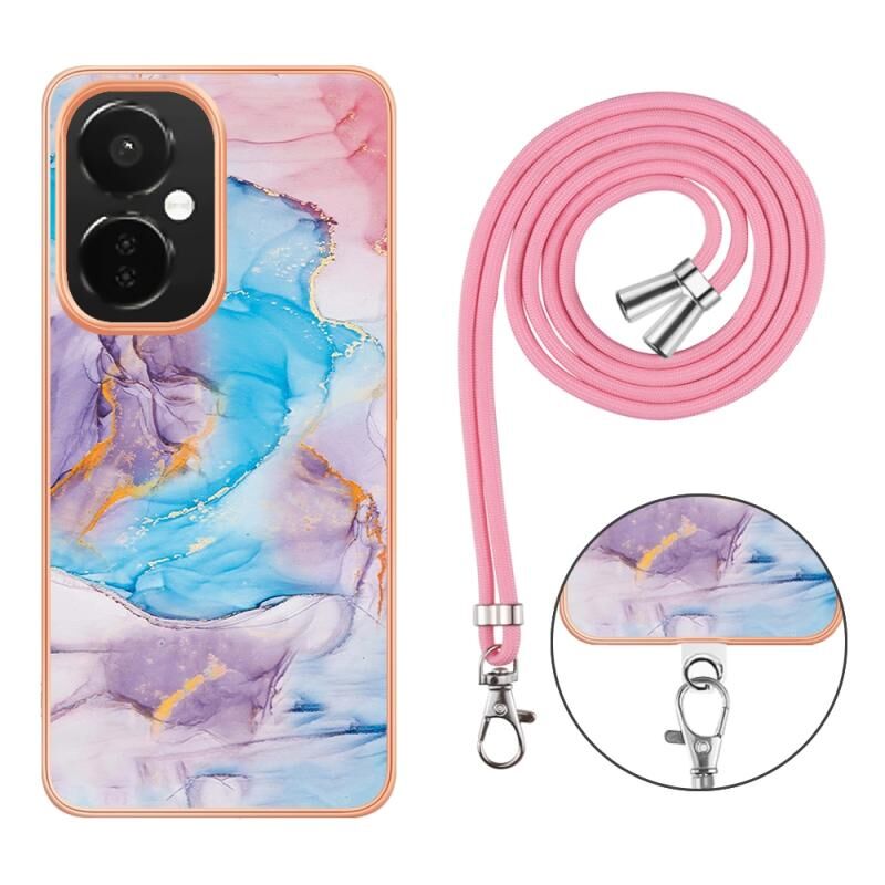 Θήκη τηλεφώνου TPU με ηλεκτρολυτική επιμετάλλωση IMD και λουρί για OnePlus Nord CE 3 Lite/Nord N30/OPPO K11x (Ροζ Λέπια)