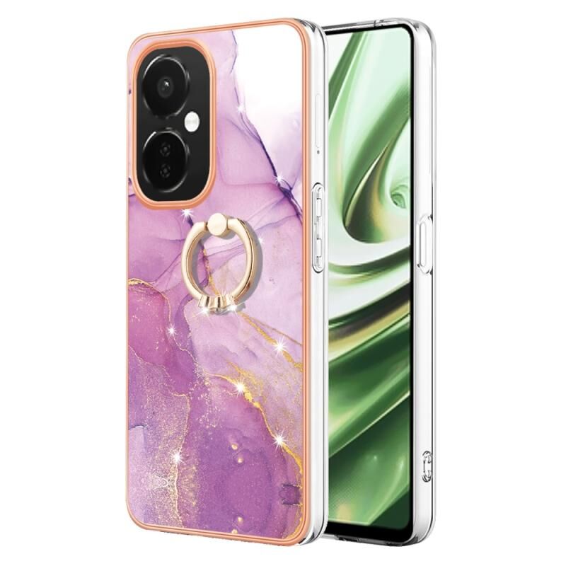 Θήκη τηλεφώνου για OnePlus Nord CE 3 Lite/Nord N30/OPPO K11x με επιμετάλλωση, σχέδιο μάρμαρου IMD, από TPU με δακτύλιο στήριξης (Λευκό 006)