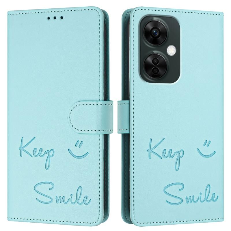 Για OnePlus Nord CE 3 Lite / Nord N30 Χαμόγελο ανάγλυφο RFID δερμάτινη θήκη τηλεφώνου (πράσινο χρώμα)