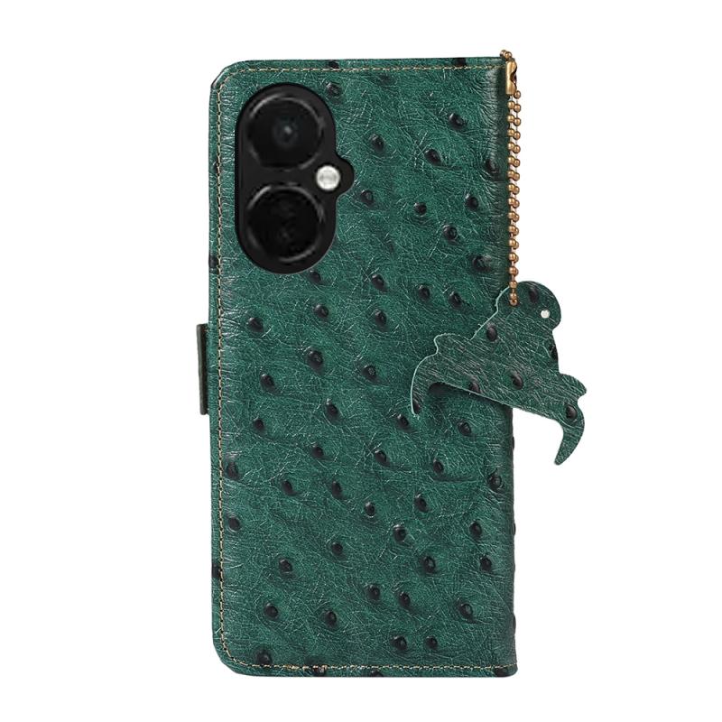 For OnePlus Nord CE 3 Lite Ostrich Pattern Genuine Leather RFID Phone Case(Green)