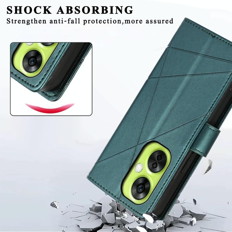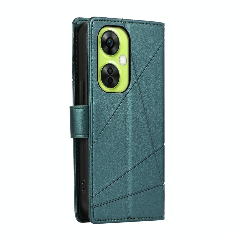 Θήκη τηλεφώνου OnePlus Nord CE 3 Lite από γνήσιο δέρμα PU με ανάγλυφη υφή και γραμμές (Μπλε)