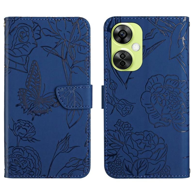For OnePlus Nord CE 3 Lite Skin Feel Butterfly Peony Embossed Leather Phone Case(Blue)