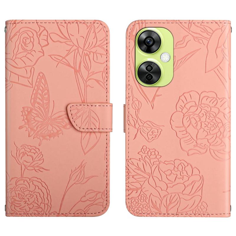 For OnePlus Nord CE 3 Lite Skin Feel Butterfly Peony Embossed Leather Phone Case(Pink)