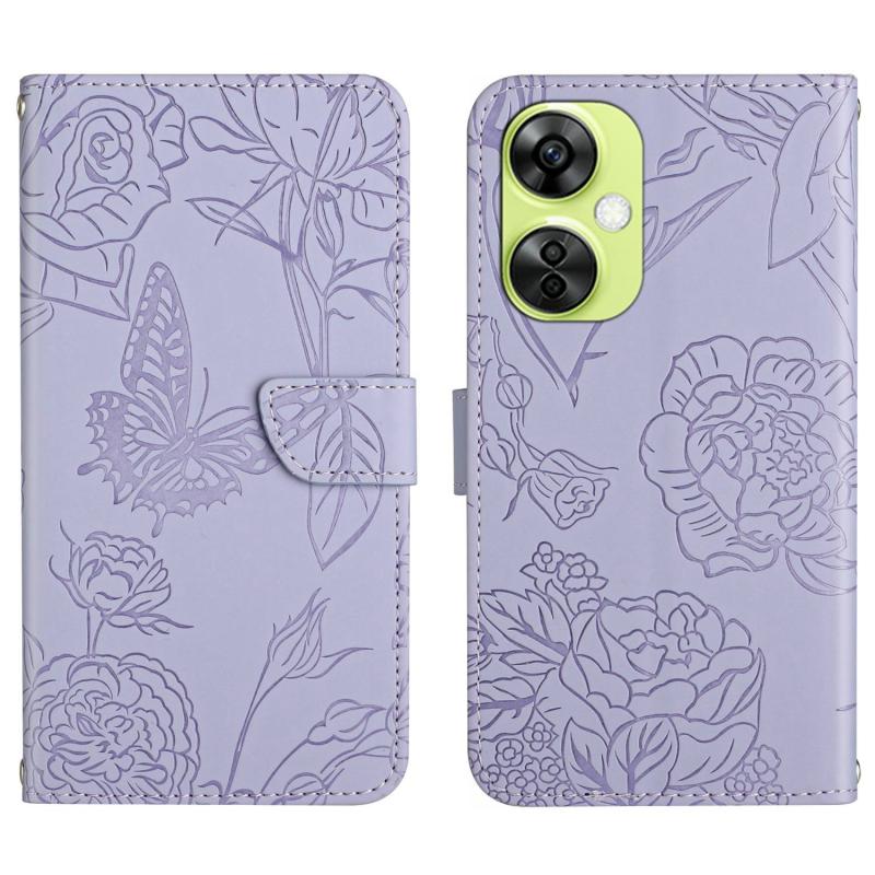 For OnePlus Nord CE 3 Lite Skin Feel Butterfly Peony Embossed Leather Phone Case(Purple)