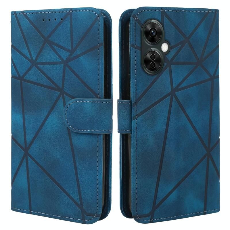 Για OnePlus Nord CE 3 Lite δέρμα αίσθηση γεωμετρικών γραμμών δερμάτινη θήκη τηλεφώνου (μπλε)
