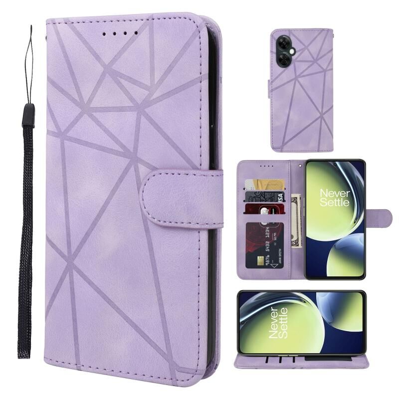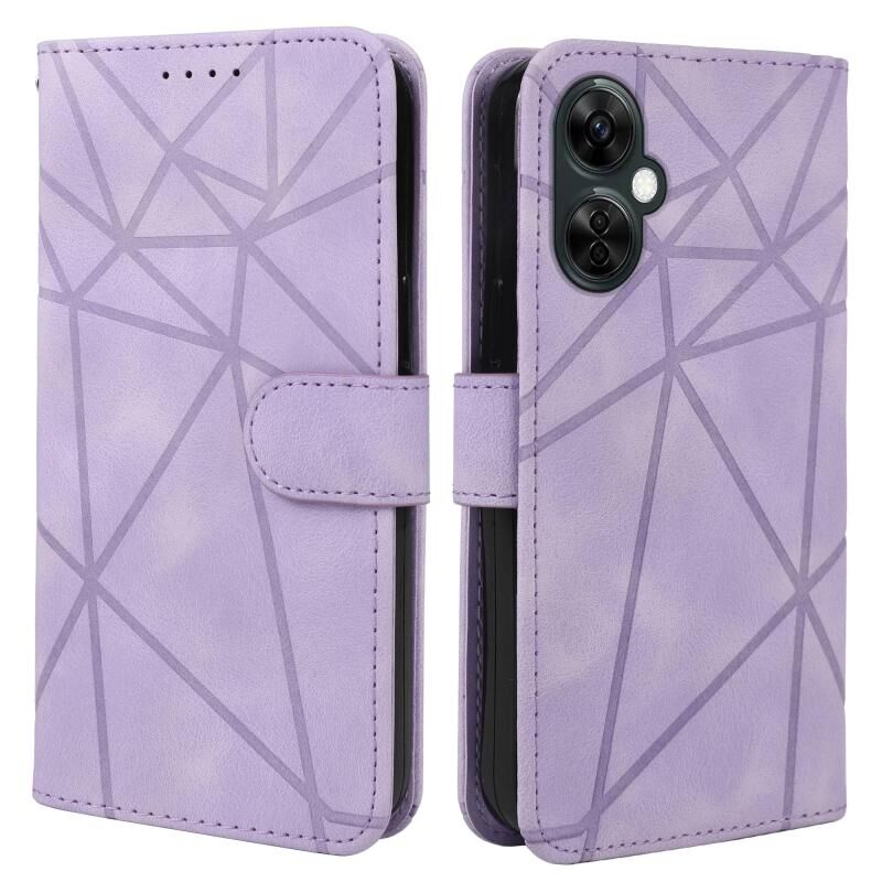 Για OnePlus Nord CE 3 Lite δέρμα αίσθηση γεωμετρικών γραμμών δερμάτινη θήκη τηλεφώνου (μωβ)
