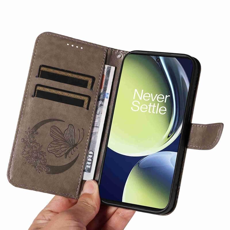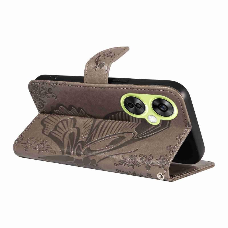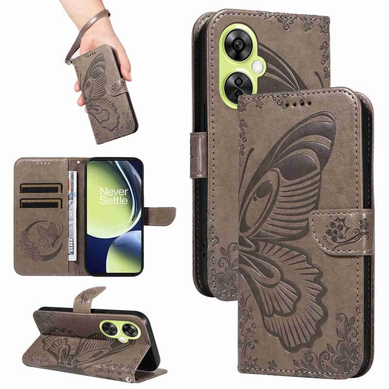 Θήκη τηλεφώνου από δέρμα με ανάγλυφο σχέδιο πεταλούδας Swallowtail για OnePlus Nord CE 3 Lite (Μπλε)