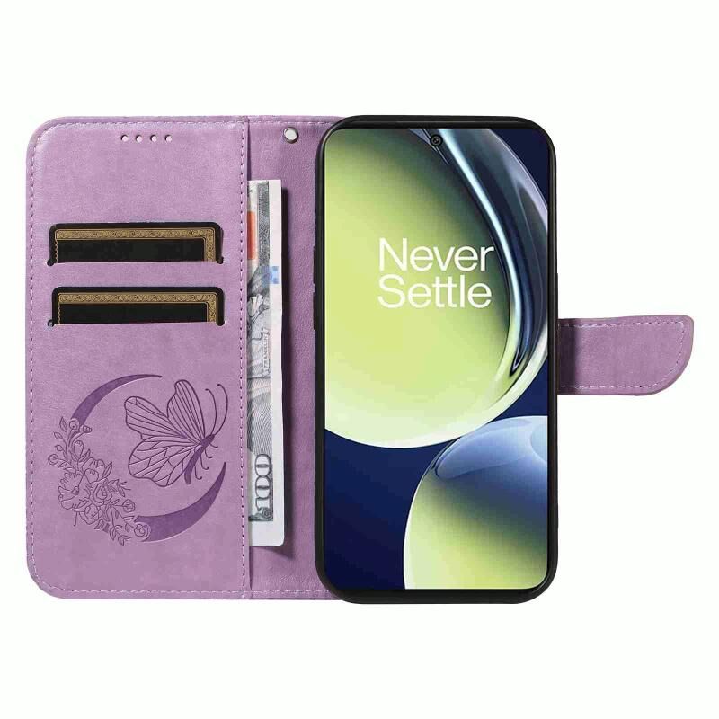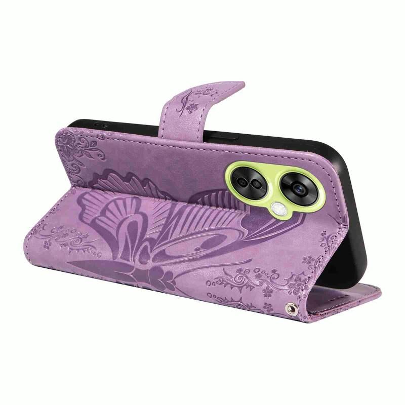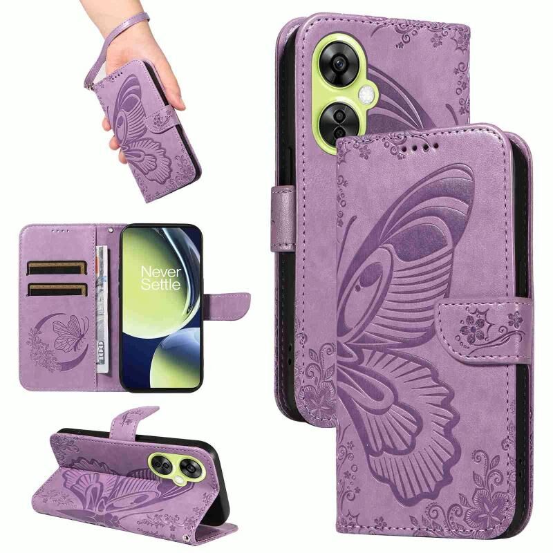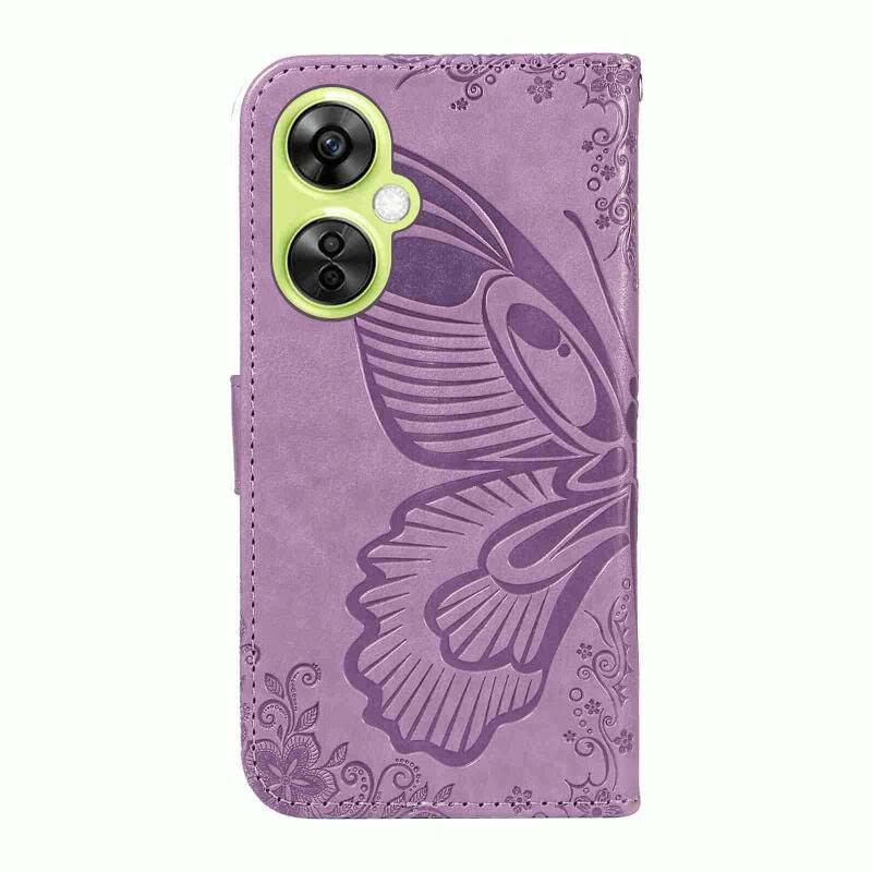 Θήκη τηλεφώνου από δέρμα με ανάγλυφο σχέδιο πεταλούδας Swallowtail για OnePlus Nord CE 3 Lite (Μπλε)