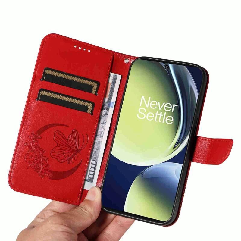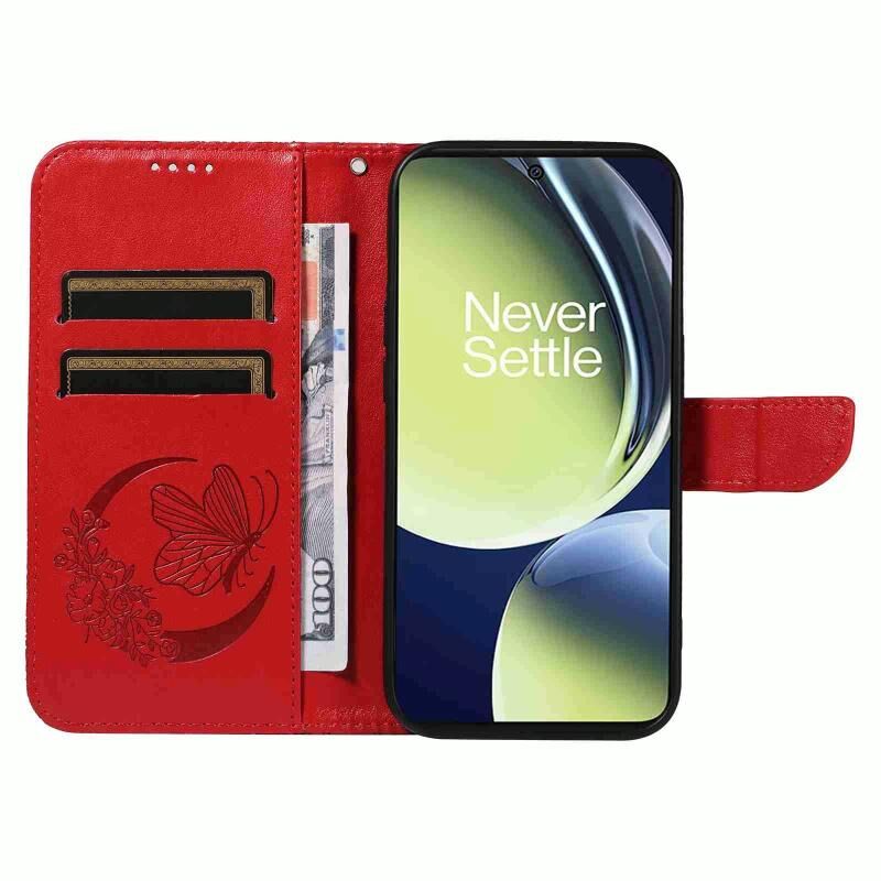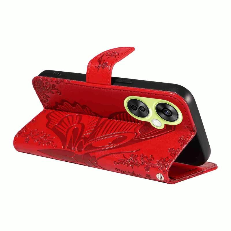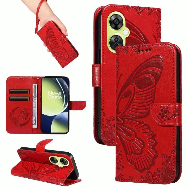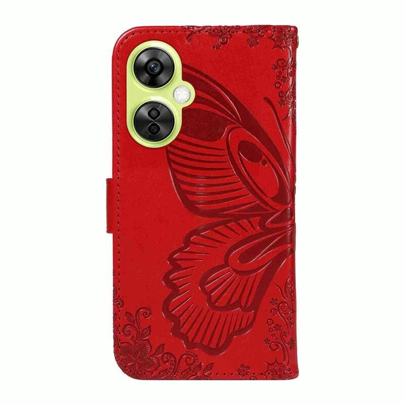 Θήκη τηλεφώνου από δέρμα με ανάγλυφο σχέδιο πεταλούδας Swallowtail για OnePlus Nord CE 3 Lite (Μπλε)