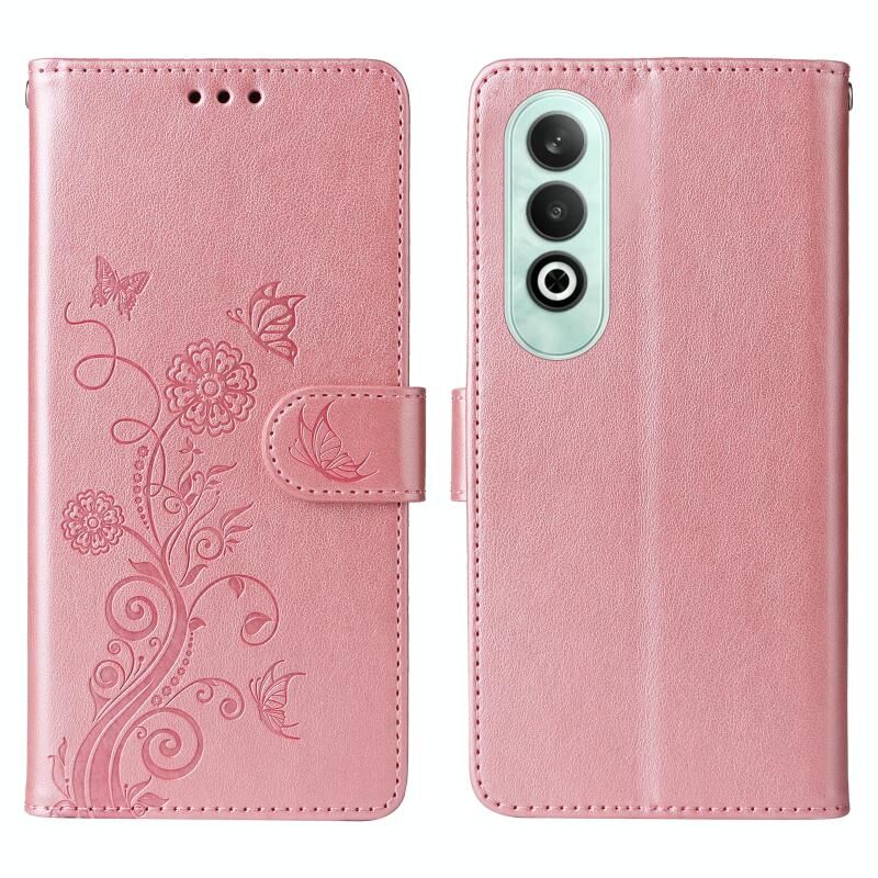 Θήκη τηλεφώνου από δέρμα με ανάγλυφα λουλούδια και πεταλούδες για OnePlus Nord CE 4 5G (Μωβ)