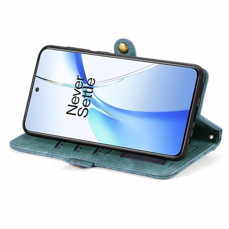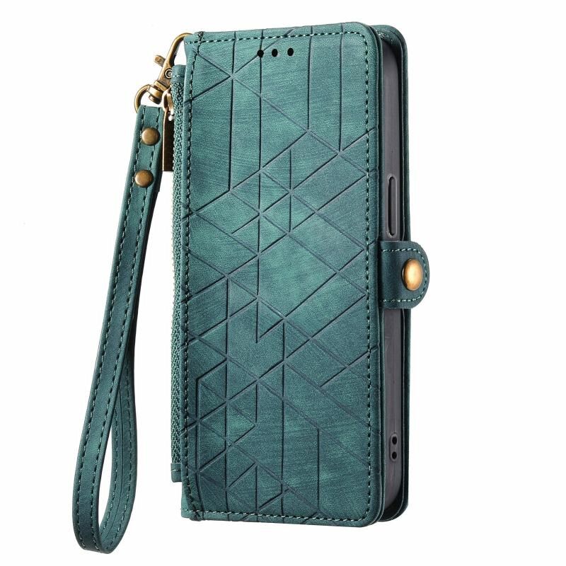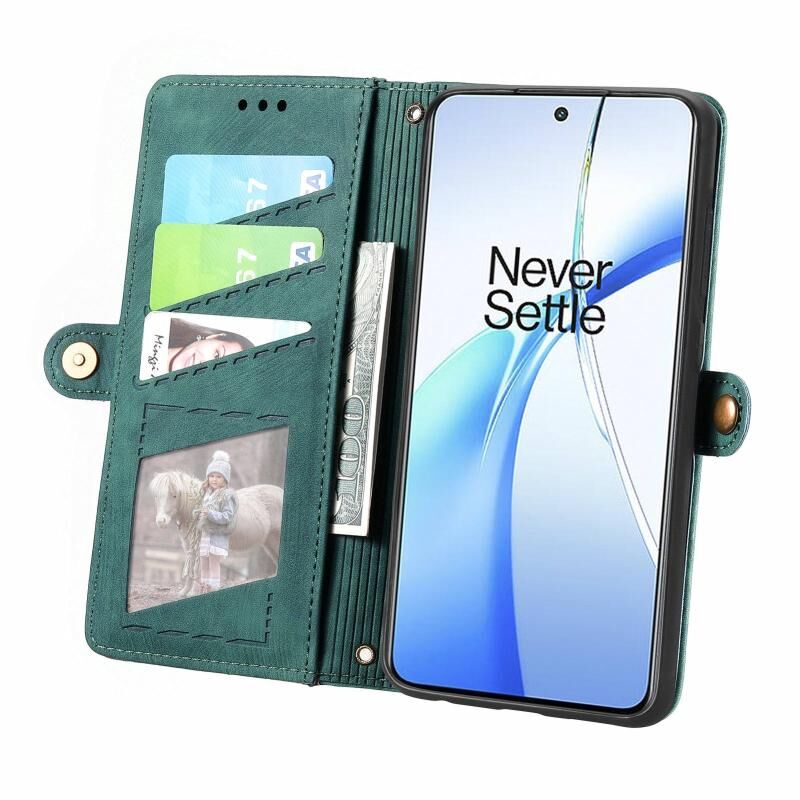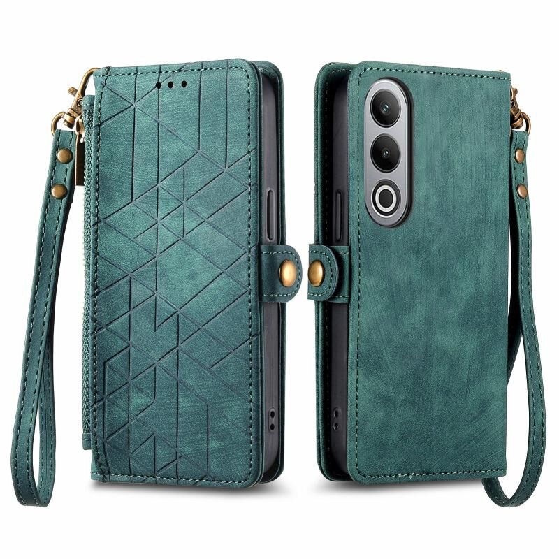For OnePlus Nord CE 4 Geometric Zipper Wallet Side Buckle Leather Phone Case(Green)