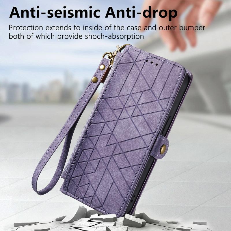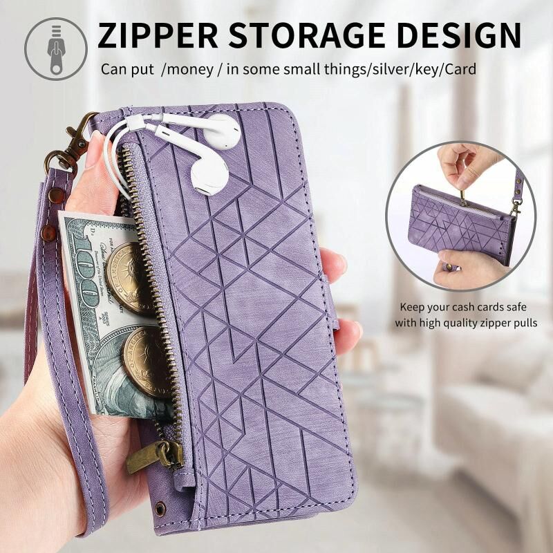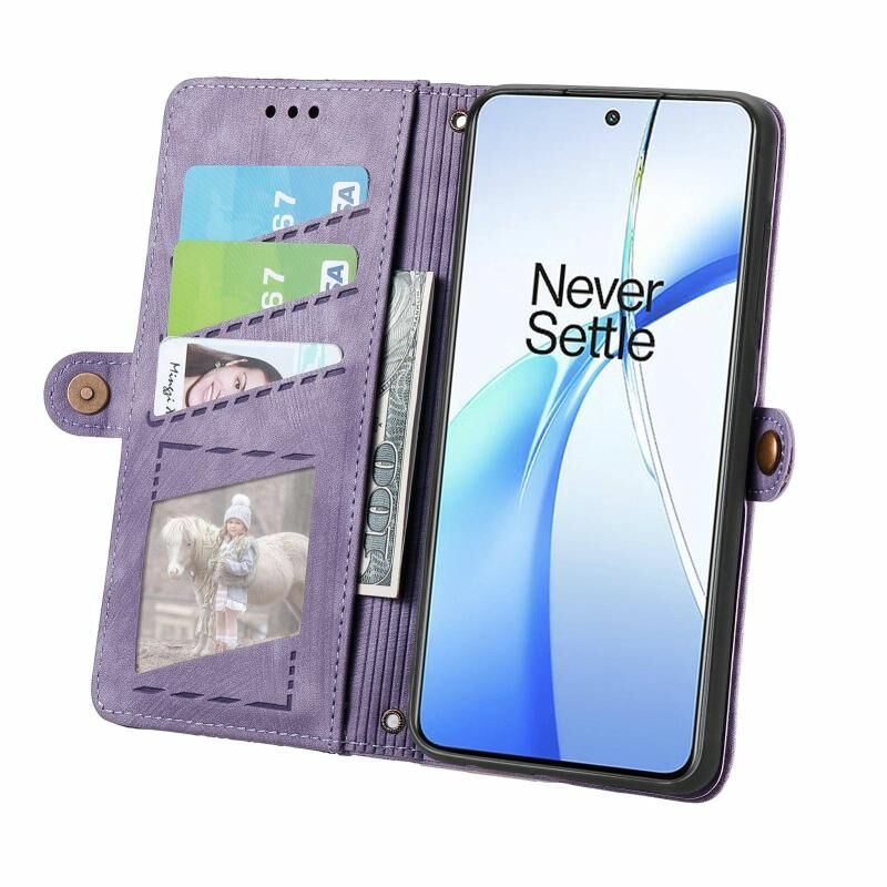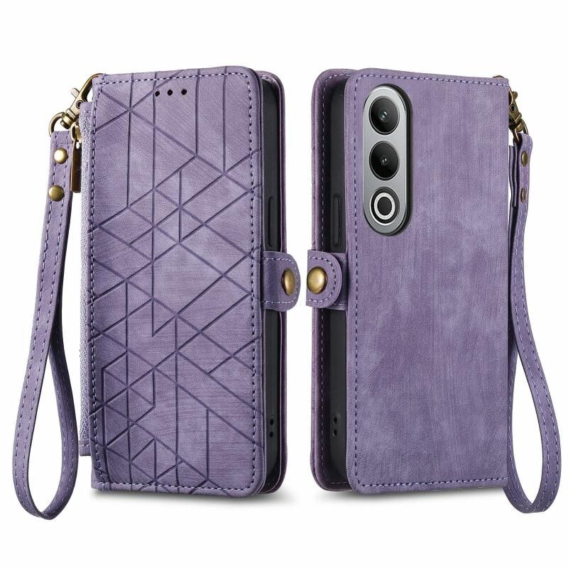 For OnePlus Nord CE 4 Geometric Zipper Wallet Side Buckle Leather Phone Case(Purple)