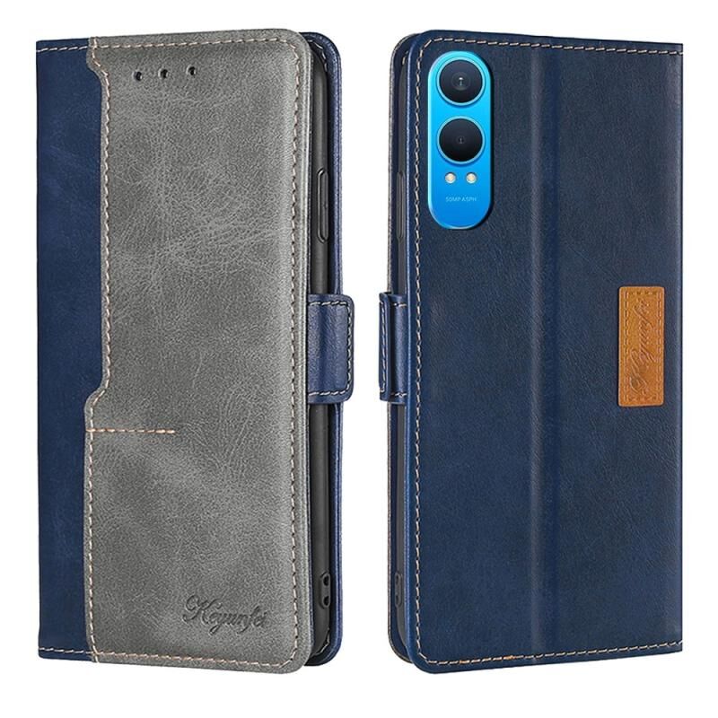 Για OnePlus Nord CE 4 Lite 5G αντίθεση χρώμα πλευρά πόρπη δερμάτινη θήκη τηλεφώνου (μπλε + γκρι)