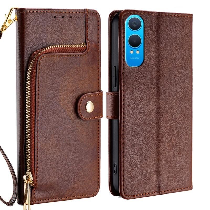 For OnePlus Nord CE 4 Lite 5G Zipper Bag Leather Phone Case(Brown)