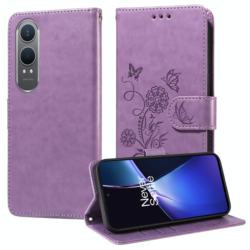 For OnePlus Nord CE 4 Lite Embossed Butterfly Flowers Leather Phone Case(Purple)