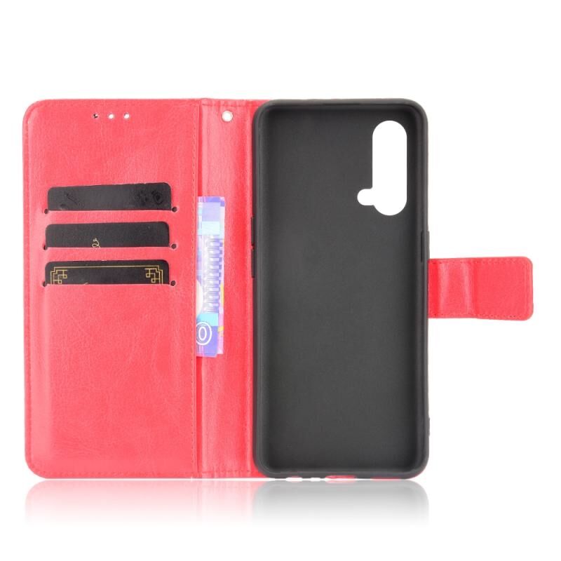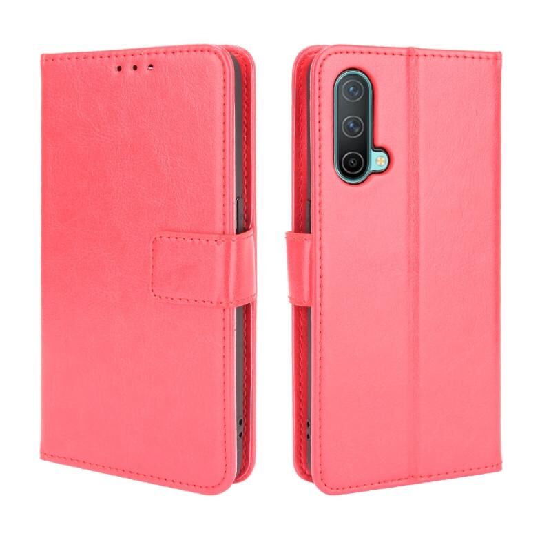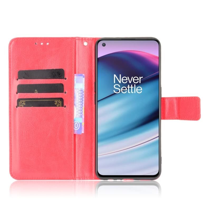 Για OnePlus Nord CE 5G Crazy Horse Υφή οριζόντια Flip δερμάτινη θήκη με θήκη & υποδοχές καρτών & κορδόνι (κόκκινο)