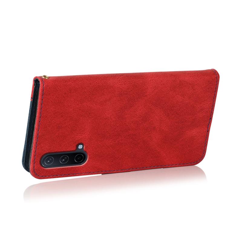 Θήκη τηλεφώνου από δέρμα με διπλή ραφή για OnePlus Nord CE 5G (Καφέ Κόκκινο)