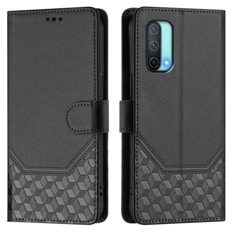Για OnePlus Nord CE 5G κηρήθρα ανάγλυφο RFID υπόθεση τηλεφώνου δέρμα (Μαύρο)