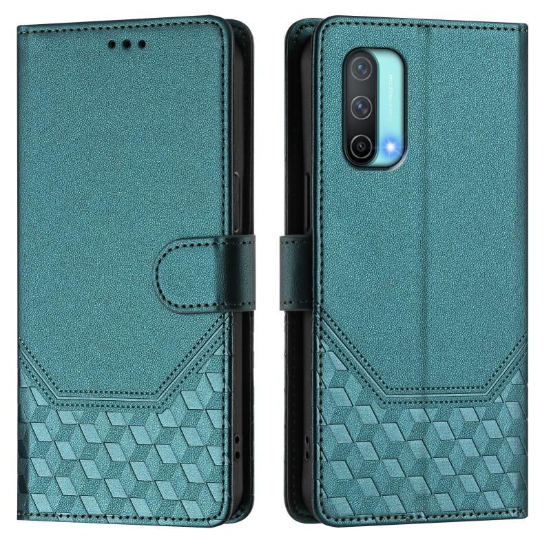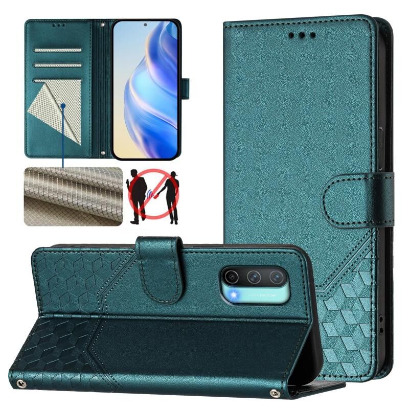 Για OnePlus Nord CE 5G κηρήθρα ανάγλυφο RFID υπόθεση τηλεφώνου δέρμα (Peacock Green)