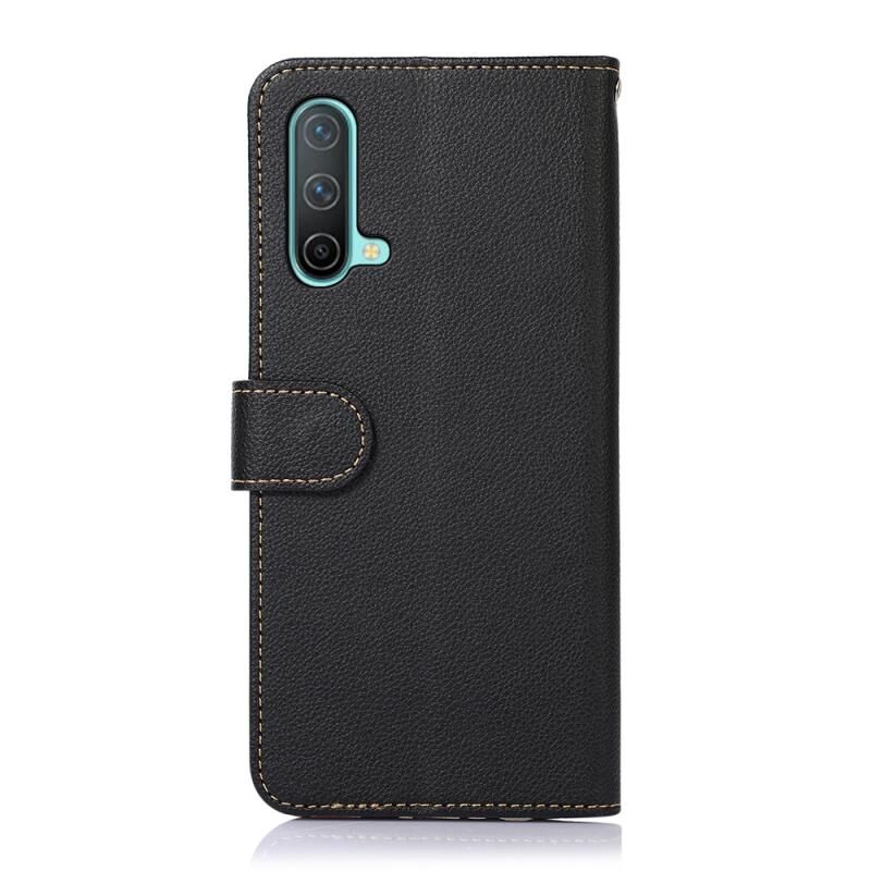 Θήκη κινητού τηλεφώνου OnePlus Nord CE 5G KHAZNEH με δέρμα υφής λυτσί και προστασία RFID (Μαύρο)