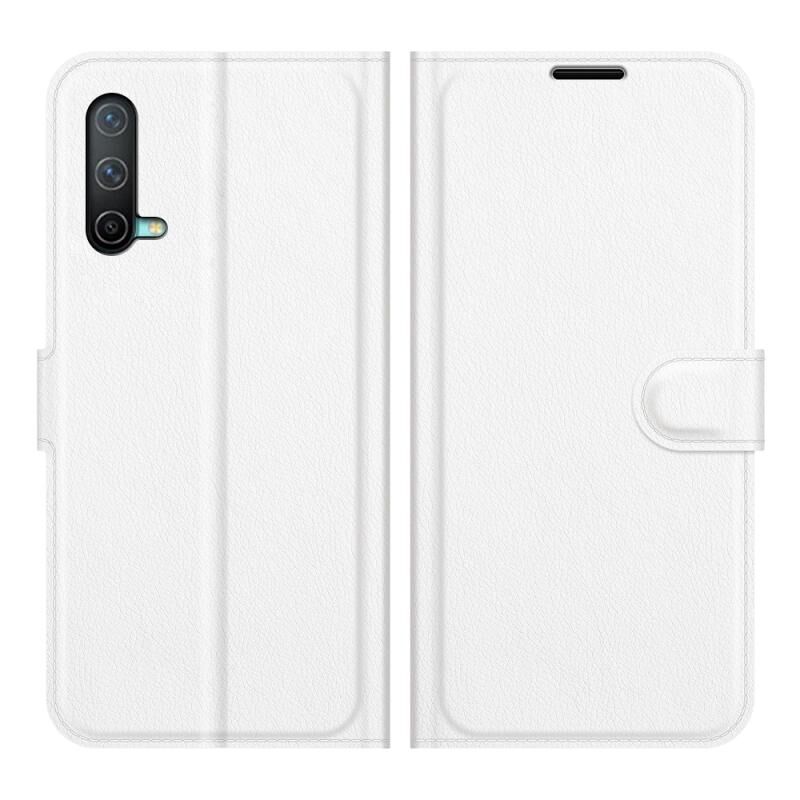 Θήκη προστασίας οριζόντιας αναδίπλωσης με υφή Litchi για OnePlus Nord CE 5G με βάση στήριξης & υποδοχές καρτών & πορτοφόλι (Λευκό)