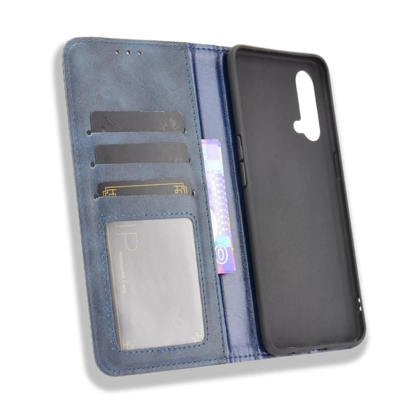 Για OnePlus Nord CE 5G Μαγνητική πόρπη Retro Crazy Horse Υφή οριζόντια Flip δερμάτινη θήκη με κάτοχο & υποδοχές καρτών & πλαίσιο φωτογραφιών (μπλε)