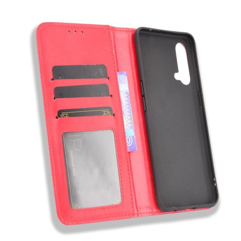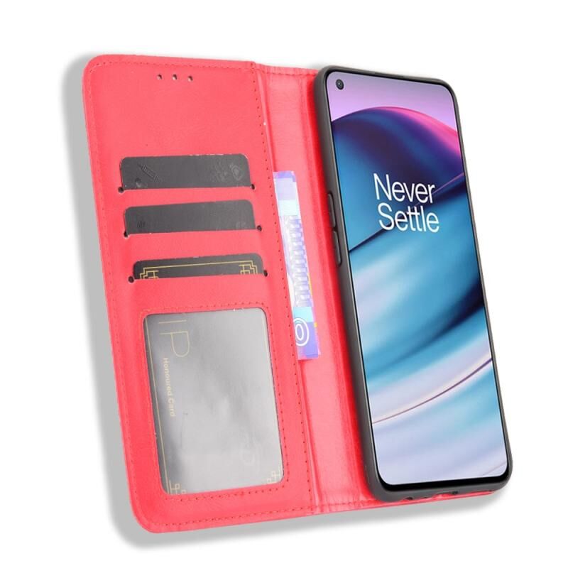 Για OnePlus Nord CE 5G Μαγνητική πόρπη Retro Crazy Horse Υφή οριζόντια Flip δερμάτινη θήκη με κάτοχο & υποδοχές καρτών & πλαίσιο φωτογραφιών (κόκκινο)
