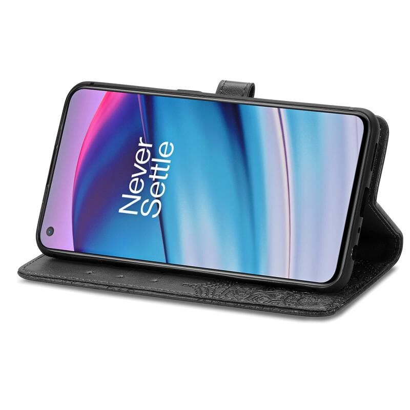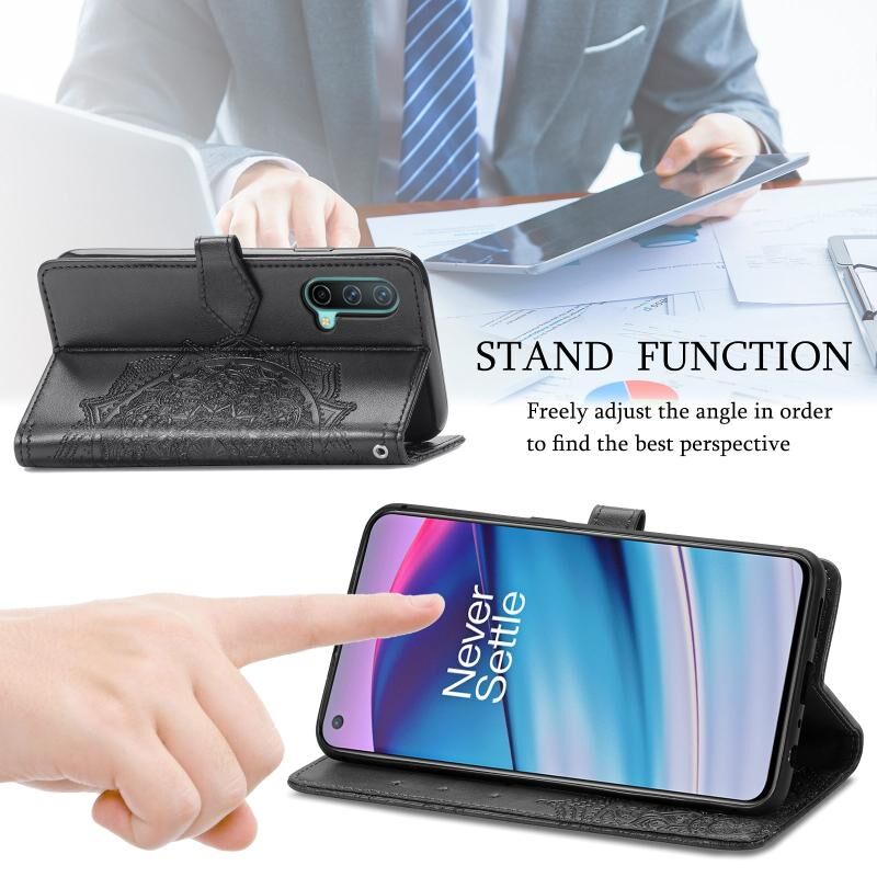 Για OnePlus Nord CE 5G Mandala λουλούδι ανάγλυφο οριζόντια Flip δερμάτινη θήκη με κάτοχο & τρεις υποδοχές για κάρτες & πορτοφόλι & κορδόνι (μαύρο)